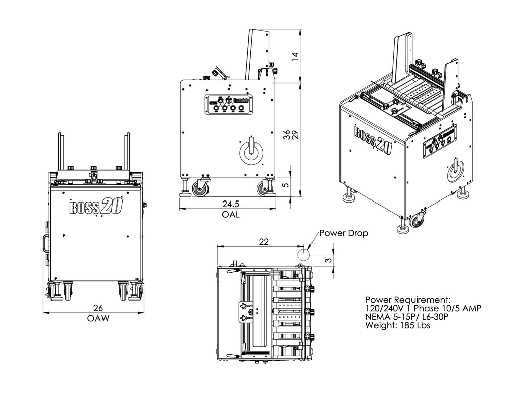 - Electrical: 120/240V 1 Phase 10/5 AMP